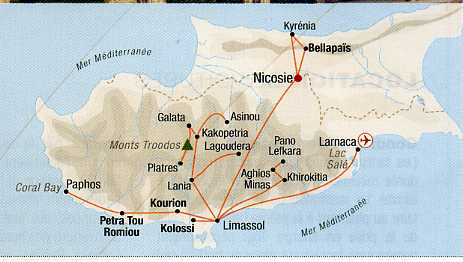 Depuis Limassol, votre port d'attache, vous rayonnerez dans l'îie grâce à de petites étapes qui vous permettront d'apprécier pleinement les multiples richesses culturelles de Chypre. Le programme s'enrichit de ia découverte de la partie nord de î'île avec les sites de Kyrénia dont le château rappelle la présence des Lusignan tandis que te monastère de Bellapaïs, témoigne de l'architecture franque au début XilI" siècle. Des panoramas grandioses aux sites antiques, des forêts de cèdres aux monastères byzantins, des petits ports de pêche aux villages de pierre des montagnes du Troodos, une mosaïque de lieux vous attend, avec le confort de retrouver chaque soir le même hôtel.