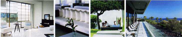 Dans le centre ville animé de Paphos, à proximité immédiate des restaurants et des boutiques, avec le port et l'ancien fort vénitien en toile de fond, cet hôtel aux lignes épurées est bâti sur 3 hectares de jardins en bord de mer, il jouit d'une belle vue panoramique. Sa décoration contemporaine et minimaliste laisse place à de grands espaces ouverts sur l'extérieur, larges parois vitrées, sol en marbre, bassins en ardoise, toits-terrasses habillés de blanc... Il dispose de 190 chambres dont 55 "Supérieure" (28 m2) situées dans le bâtiment principal avec vue sur la mer, 12 "chambres véranda vue mer" (28 m2) possédant un balcon, 18 "chambres terrasse vue mer" (28 m2) donnant sur les jardins et 20 "Kyma Suite" (47 m2) dans les jardins avec terrasse privative aménagée avec sofas sur le toit et tournées vers la mer. Toutes sont équipées de salle de bains (et douche séparée dans la "Kyma Suite"), sèche-cheveux, peignoirs, coffre, télévision via satellite, téléphone, ventilation, minibar, accès Internet, coin salon.2 restaurants avec cuisine locale et internationale : le "Mosaic", restaurant principal, servant le petit-déjeuner et le dîner sous forme de buffets dans le cadre de la demi-pension, repas à la carte au "Notios", proche de la piscine et snacks à "l'Ouzerie" à proximité de la plage. Lobby bar avec vue sur la mer et bar proche de la piscine. 1 belle piscine avec bassin pour les enfants, courts de tennis (éclairage payant), tennis de table, salle de gymnastique ; transats, serviettes et matelas autour de la piscine et sur la plage. Avec participation : sauna, bain à remous, ski nautique, planche à voile, plongée sous-marine, boutiques. Mini-club de 4 à 11 ans. Menu enfants et baby-sitting sur demande. Parking privé gratuit. • Offre spéciale : 7me nuit offerte en petit-déjeuner (sauf du 01/08 au 20/08) (offre valable uniquement pour les chambres supérieures vue mer et les Kyma Suites).
