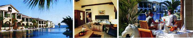 Niché entre deux falaises, le long d'une belle plage, cet hôtel de luxe se trouve dans l'une des régions les plus authentiques et les mieux préservées de Chypre. A 2 km du village pittoresque de Pissouri, à 34 km de Paphos et 35 km de Limassol, il permet d'allier détente et découverte dans un cadre raffiné protégeant l'intimité. D'harmonieux bâtiments d'inspiration méditerranéenne, en pierre blonde et aux toits en tuiles entourent une belle piscine paysagée. L'hôtel dispose de 94 Suites Junior spacieuses et lumineuses, vue jardin ou vue mer, avec salle de bains et douche séparée, sèche-cheveux, peignoirs, télévision via satellite, téléphone, air conditionné, ventilateur, accès Internet, minibar, set de thé et de café, balcon ou terrasse, coin salon. Room service 24h/24. Petit-déjeuner buffet. 2 restaurants : cuisine internationale au "Dionysos" et l'"Apollo Taverne" qui propose snacks, mezzés et poissons. L'"0uzerie", cocktail-bar avec terrasse panoramique. La piscine intérieure communique avec la grande piscine extérieure en formede lagon avec bassin pour les enfants. Plage (sable et galets). Transats, serviettes et parasols autour de la piscine et à la plage. Beau salon. Salle de musculation, sauna, bains à remous et à vapeur. 1 courts de tennis (éclairage payant), 2 courts de squash. Tous les jours (sauf le dimanche et les jours fériés) et sur réservation, navette gratuite deux fois par jour pour Limassol, Secret Valley Golf Club et Aphrodite Hills Golf Club et deux fois par semaine pour Paphos. Avec participation : centre de remise en forme, Spa avec large gamme de soins et de massages, salon de coiffure, sports nautiques, baby-sitting sur demande. Aire de jeux pour les enfants et mini club de 3 à 12 ans. Boutique, service de blanchisserie. Location de voiture recommandée. Parking privé gratuit. • Voyage de noces : 1/2 heure de massage/pers. offerte et surclassement selon disponibilité. Offres spéciales : pour tout séjour compris entre le 01/07 et le 01/08,7' nuit offerte en petit-déjeuner. 1 mezzé et 1 manucure ou 1 pédicure offerts pour un séjour minimum de 7 nuits.