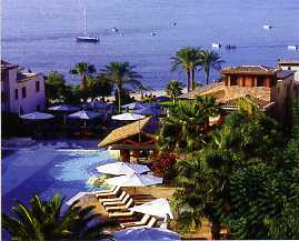 L'un des plus charmants hôtels de l'île, arrimé à cette langue de sable blond, semble tout droit sorti d'un conte de fées. Ce serait le conte de l'Amour. L'action se situerait non loin du vieux bourg pittoresque de Pissouri...