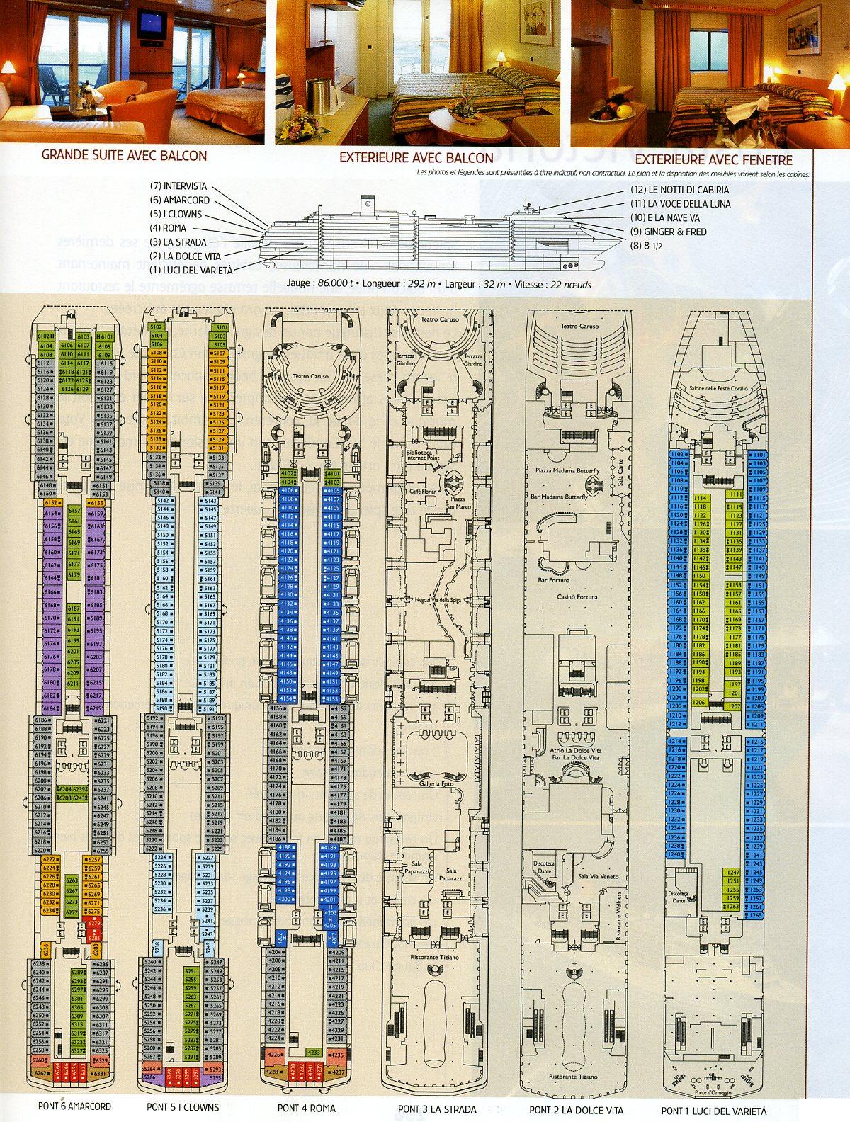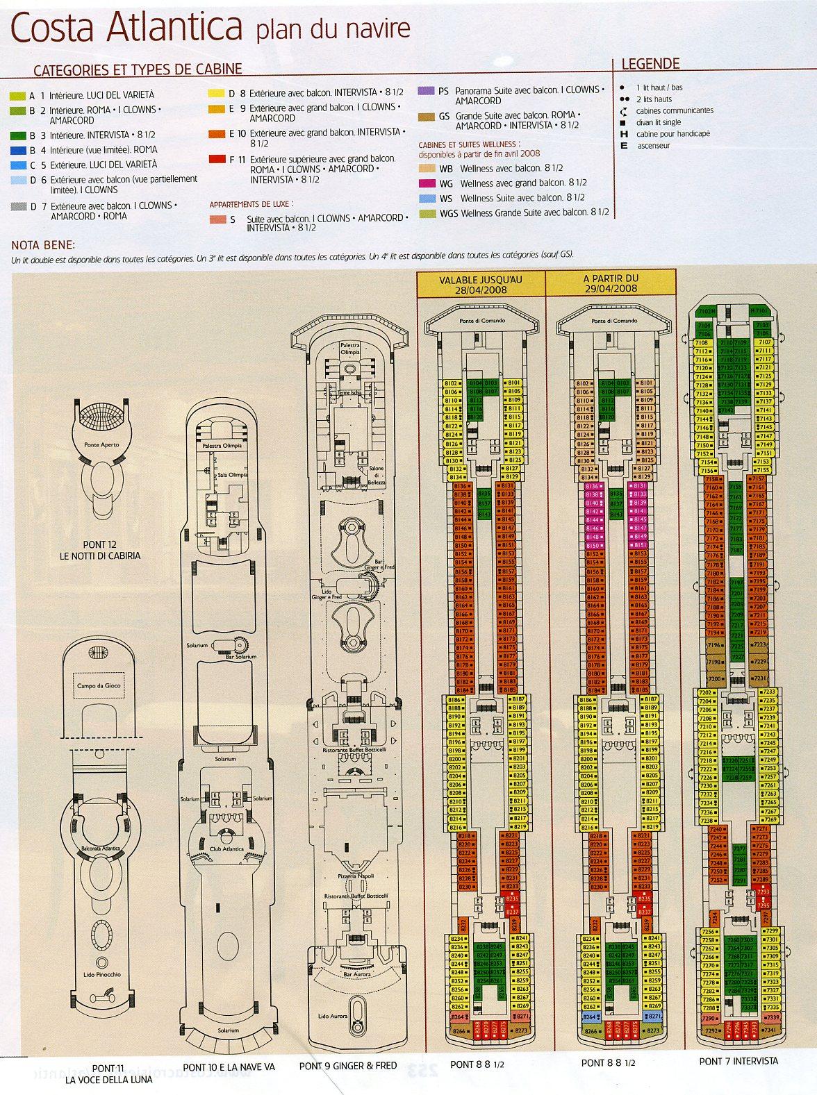 plan du navire Costa Atlantica