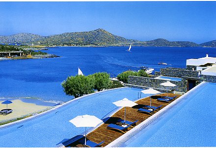 Superbe vue sur le golfe de Mirabello, architecture innovante, en parfaite harmonie avec le paysage, centre de Spa luxueux.