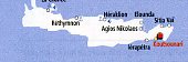 115 km au sud-est d'Héraklion, à 9 km de lerapetra, vivante station balnéaire et ville la plus méridionale d'Europe, à proximité des villages typiques de Ferma et Agia Fotia. Plage à 2 km en contrebas portant le drapeau bleu de l'Union Européenne.