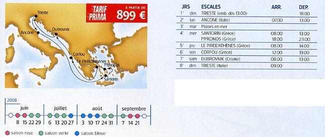 Croisières !!! Oubliez vos repères, larguez les amarres et quittez la terre ferme pour naviguer sur les océans et mers du monde. La croisière est un voyage dans le temps où on savoure chaque instant au rythme d'autrefois. Sans la contrainte de faire et refaire ses baggages, vous vous laissez transporter, confortablement installé dans votre cabine. Au rythme de la navigation, révez devant l'immensité qui vous enveloppe ou admirez les paysages qui défillent devant vous.. les heures ne comptent plus, la sensation de liberté est totale. La croisière, c'est aussi l'occasion de profiter de la vie à bord, de s'intitier à la navigation...La croisière, c'est enfin le découverte. Le temps d'une escale, vous abordez une nouvelle terre avec un regard neuf. Chaque croisière est une aventure