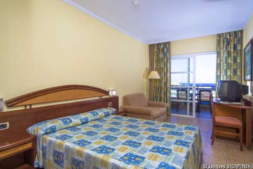 - 5 étages, ascenseurs dont 1 extérieur panoramique. - 199 chambres climatisées de 35 m2 environ, à 2 lits ou grand lit. - Possibilité de chambre quadruple avec au moins un enfant, côté cour. - Salle de bains avec sèche-cheveux, téléphone, mini réfrigérateur, TV, terrasse aménagée. - Avec supplément : coffre-fort. Chambre vue mer. Chambre quintuple : une double et une individuelle communicantes, vue mer, pour 4/5 personnes dont au moins un enfant. Suite : salon et chambre séparés, de 2 à 4 personnes, 427 EUR / semaine).