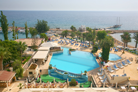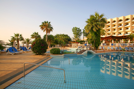 Hôtel de 228 chambres dans 2 bâtiments, en bordure d’une plage de sable, 2,5 km de Protaras, 7,5 km de Paralimni, 8 km d’Ayia Napa, 55 km de l’aéroport de Larnaca