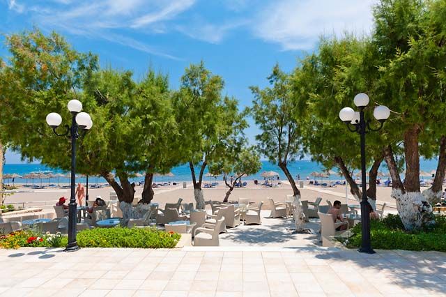 En bordure d'une superbe plage de sable, à 2 km de la station balnéaire de Faliraki, 10 km de la ville de Rhodes et 14 km de l'aéroport.