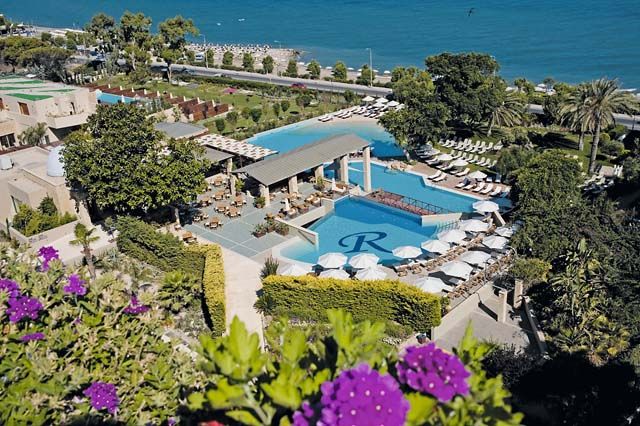 Situation : À Ixia sur la côte nord ouest de l'île, à 10 km de l'aéroport et 5 km de la ville de Rhodes. Face à la mer avec un accès à la plage de sable et petits galets par passage sous terrain en dessous de la route côtière. Arrêt de bus de ligne régulière devant l'hôtel pour se rendre à Rhodes ou dans le centre de la station de Ixia.