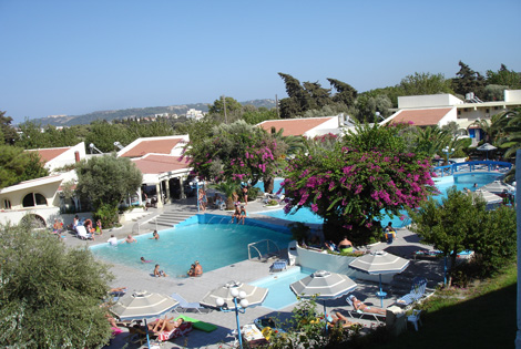 A 7 km de l'aéroport de Rhodes, à 8 km de la ville médiévale de Rhodes et à 2 km des villages de Ialyssos et Kremasti, facilement accessibles depuis l'hôtel-club en bus de ligne. L'hôtel-club Filerimos vous offre 247 chambres, réparties dans plusieurs bungalows d'un étage (sans ascenseur) autour d'un beau jardin fleuri de 40 000 m2 ainsi que dans un bâtiment principal. Il se trouve à 700 m d'une plage de galets (route à traverser).
