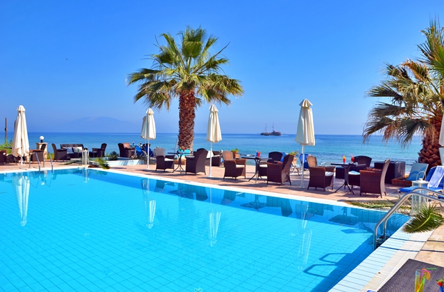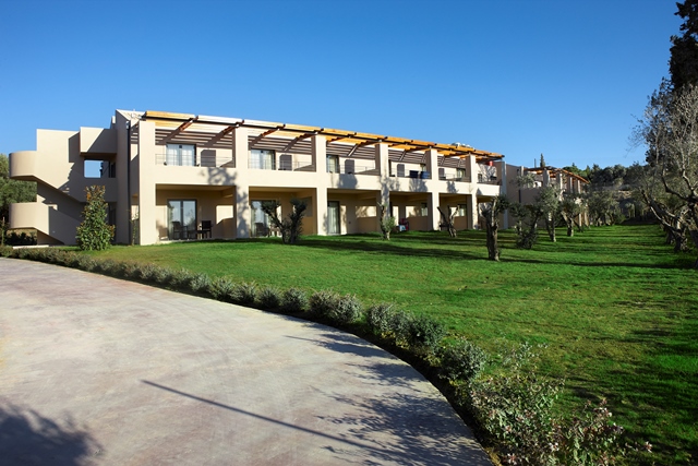 Hébergement : 116 chambres réparties sur un bâtiment principal et sept annexes de deux étages construites dans le style d’un village Ionien. L’hôtel dispose de chambres équipées pour les personnes à mobilité réduite, les extérieurs sont également adaptés.