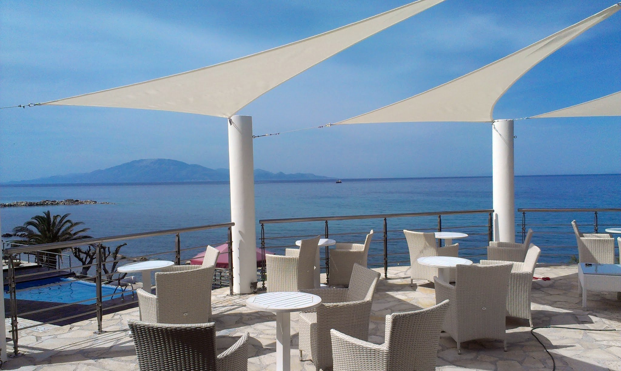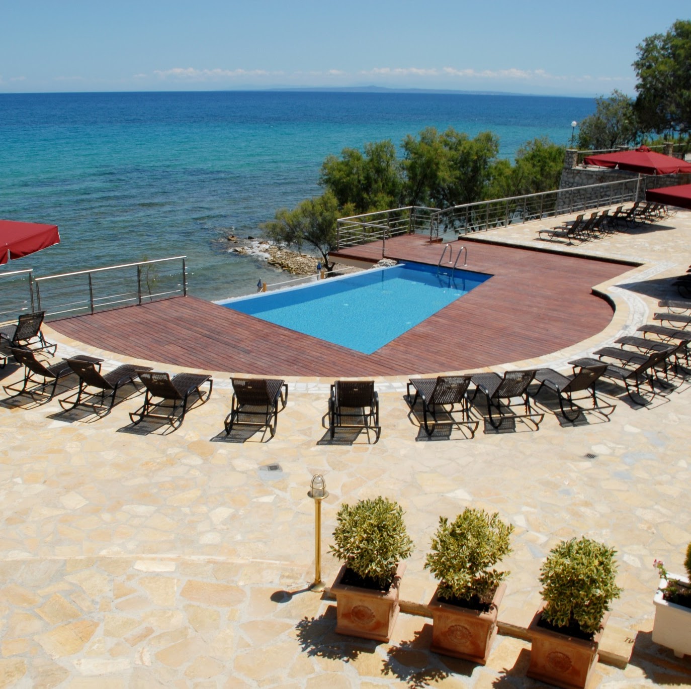1 grande piscine extérieure principale, 1 piscine annexe « Cosy », offrant toutes les deux avec superbe vue sur la Mer Ionienne et l’île de Céphalonie. Bassin séparé pour les enfants. Transats et parasols gratuits autour des piscines. Plage de petits galets.