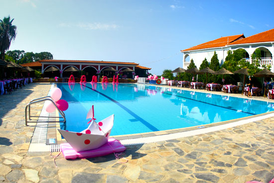 Sports et loisirs : 1 piscine extérieure avec partie pour enfants, aménagée de transats et de parasols gratuits. Accès aux piscines et aménagements des deux autres hôtels du complexe dont la piscine couverte du Palazzo di Zante. Terrain de tennis (prêt de raquettes, éclairage payant), de basketball, de football, pétanque, fléchettes, salle de fitness. Plage aménagée de transats et de parasols (7 € / jour pour 2 transats et 1 parasol).