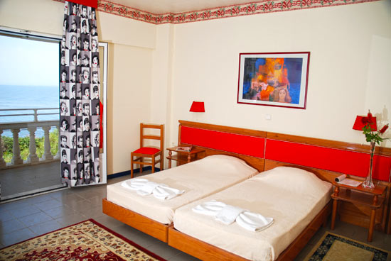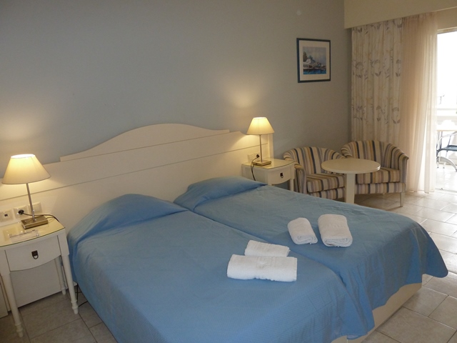 Chambres : décorées et meublés très simplement, elles offrent un balcon vue jardin ou vue piscine (avec supplément), une salle de bain avec baignoire, sèche-cheveux, la climatisation, TV satellite, mini-réfrigérateur, téléphone (ligne directe). Possibilité de coffre-fort (3 € / jour).