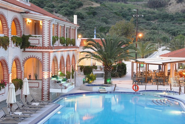 Situation : à 15 km de la ville de Zante (Zakynthos), 17 km de l’aéroport, 10 km de Argassi, dans la magnifique région de Vassilikos, à 800 m du village. Un hôtel idéal pour des vacances en famille.