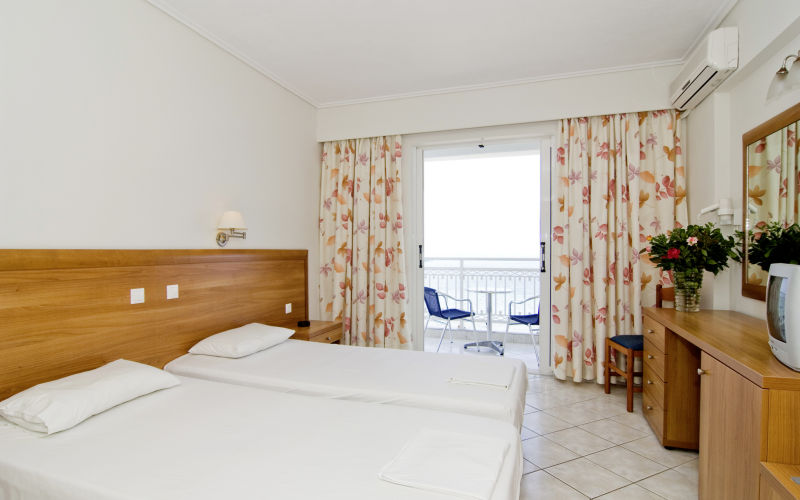 Situation : situé au bord de la plage de sable de Laganas. Le centre de la localité, avec ses tavernes, bars et magasins se trouve à 800 m. L’hôtel est également à 10 km de la ville de Zante (Zakynthos) et à 4 km de l’aéroport. Service de bus régulier pour le centre de Zante à 400m.