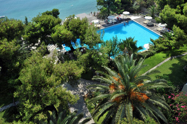 Dans le Péloponnèse, surplombant une plage de sable et petits cailloux (escaliers), à environ 700 m d’Isthmia, 8 km de Corinthe, 10 km de Loutraki et 115 km de l’aéroport d’Athènes.