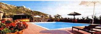 SITUATION : A 1 km de Chora et de son port, 1,5 km de la plage de sable de St Georges et de l'aéroport.
